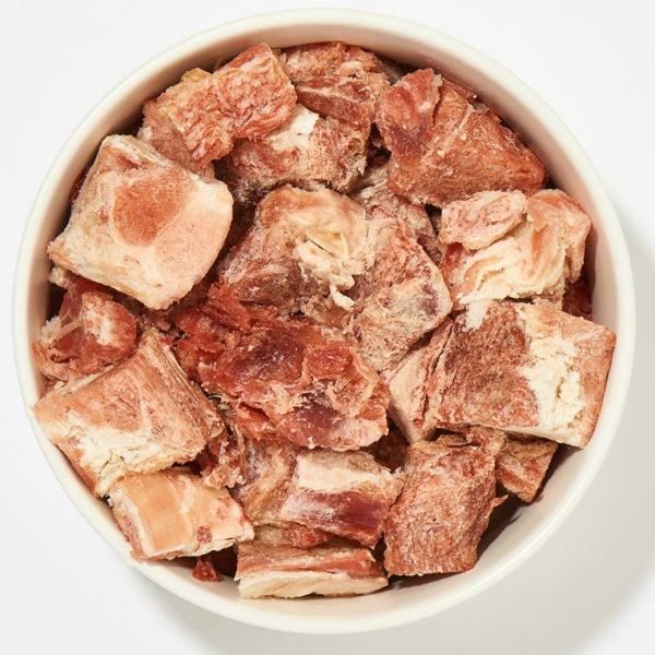 Größere Hunde und Schlinger können durch die etwas größeren Stücke zum Kauen animiert werden. Gerade auch viele Katzen haben eine Vorliebe für stückiges Fleisch.