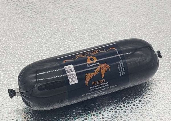 Mirals Hundewurst Pferd besteht aus reinem Muskelfleisch und eignet sich wegen seiner Softigkeit perfekt als Belohnung im Hundetraining; die ideale Trainingswurst. Sie ist ein Monoprotein, schnittfest, gluten-, getreidefrei und somit auch für zwischendurch ein herrlicher Leckerbissen.
