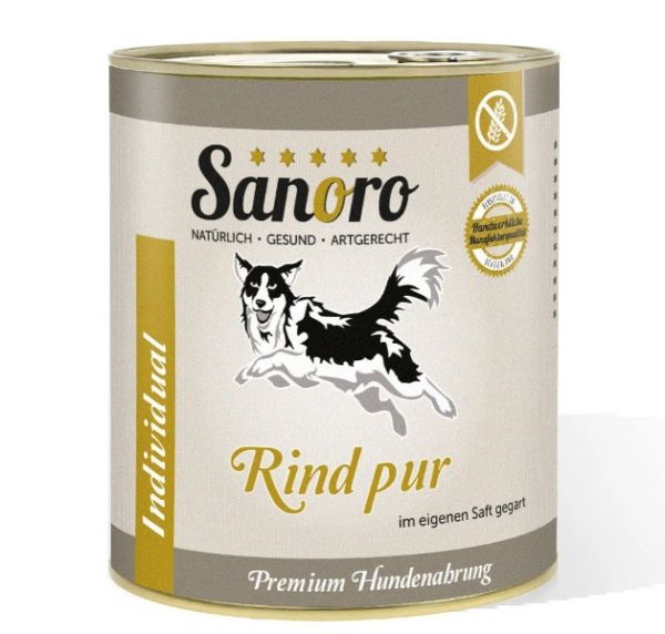Sanoros Reinfleischdosen sind pures Muskelfleisch und werden im eigenen Saft ohne Zugabe von Salz, Mineralien oder Bindemitteln gegart.