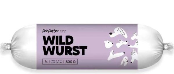 Die „Wild mit Zucchini“ Hundewurst besteht aus 92% saftigem Wildfleisch, das von Wildinnereien und Wildpaste abgerundet wird.
