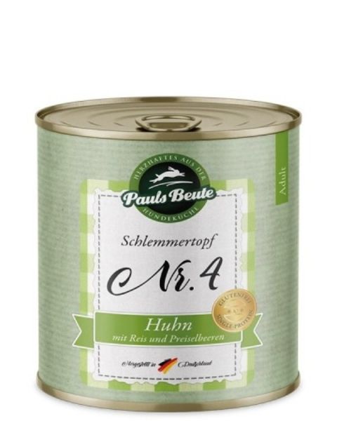 Beim Schlemmertopf Nr. 4 ist das Herzstück dieses Nassfutters der hohe Anteil an frischem Fleisch und nahrhaften Innereien.