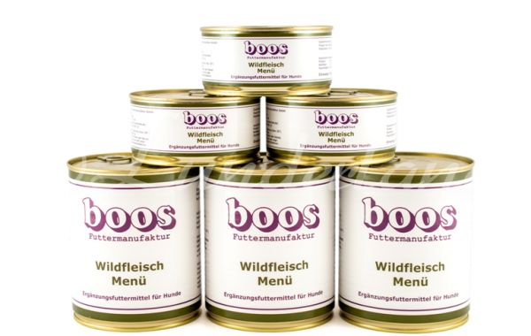 Wildfleisch vom Rot- und Damwild (70%), Reis, Karotten, Pastinaken, Kürbis, Zucchini, Sellerie
