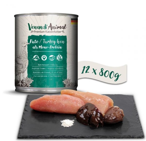 Venandi Nassfutter Pute garantiert durch die nativen und exquisiten Zutaten die Versorgung Ihrer Katze mit allen wichtigen Nährstoffen. Auch für Katzen mit empfindlicher Verdauung ist Venandi Pute bestens geeignet, da die Verarbeitung von nur einer Proteinquelle im Menü zu einer sehr hohen Verträglichkeit führt.