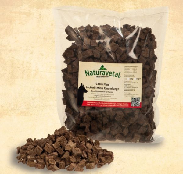 Canis Plus Leckerli-Minis mit den härteren, kleinen Stücken aus bester Rinderlunge eignen sich hervorragend zur schnellen Bestätigung des Hundes im Training. Sie sind trocken und angenehm in der Hand – ideal für Jacken- und Hosentaschen. Da Lunge nur wenige Kalorien hat, ist sie eine echte Empfehlung auch für übergewichtige Hunde als Belohnung zwischendurch.