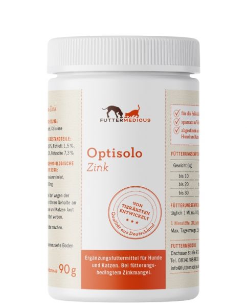 Zink ist ein Spurenelement und für den Hunde- und Katzenkörper ein essentieller Nährstoff. Es ist an der Zellteilung beteiligt und spielt eine Rolle bei der physiologischen Hautfunktion. Ein ernährungsbedingter Zinkmangel kann mit dem Zink-Pulver von Futtermedicus ausgeglichen werden.