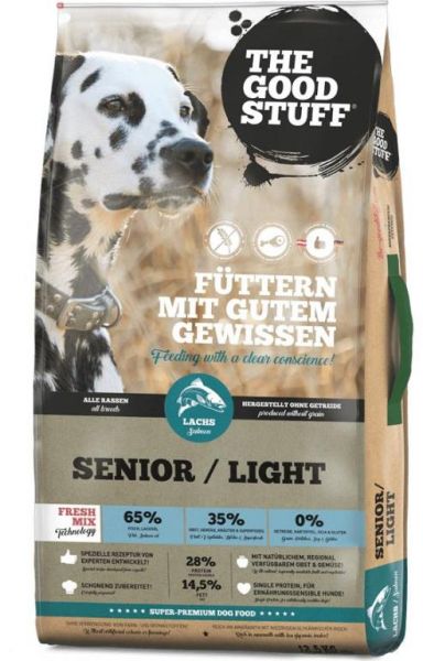 Das Trockenfutter Lachs für ältere Hunde oder erwachsene Hunde mit geringer Aktivität in bewährter THE GOODSTUFF Super Premium-Qualität. Ein ideales Alleinfuttermittel für Hunde aller Rassen und Größen.